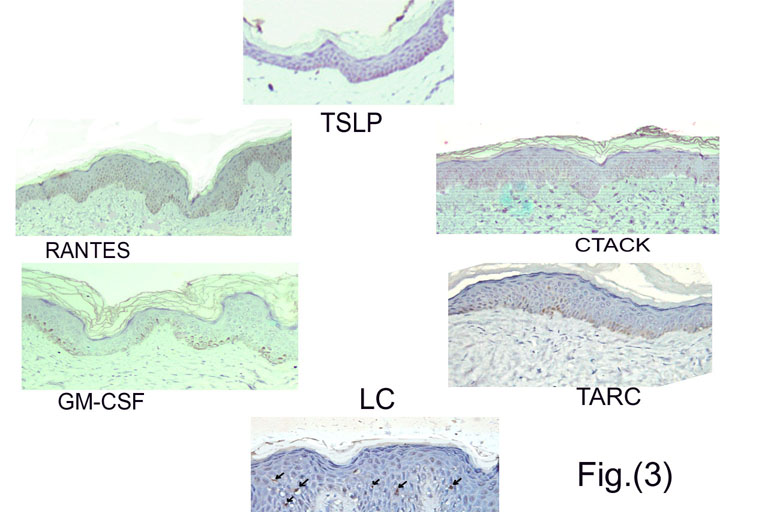 Immunohistochemical reactivity of normal control epidermis. Negative staining for TSLP and TARC and only very weak staining for GM-CSF, CTACK and RANTES.