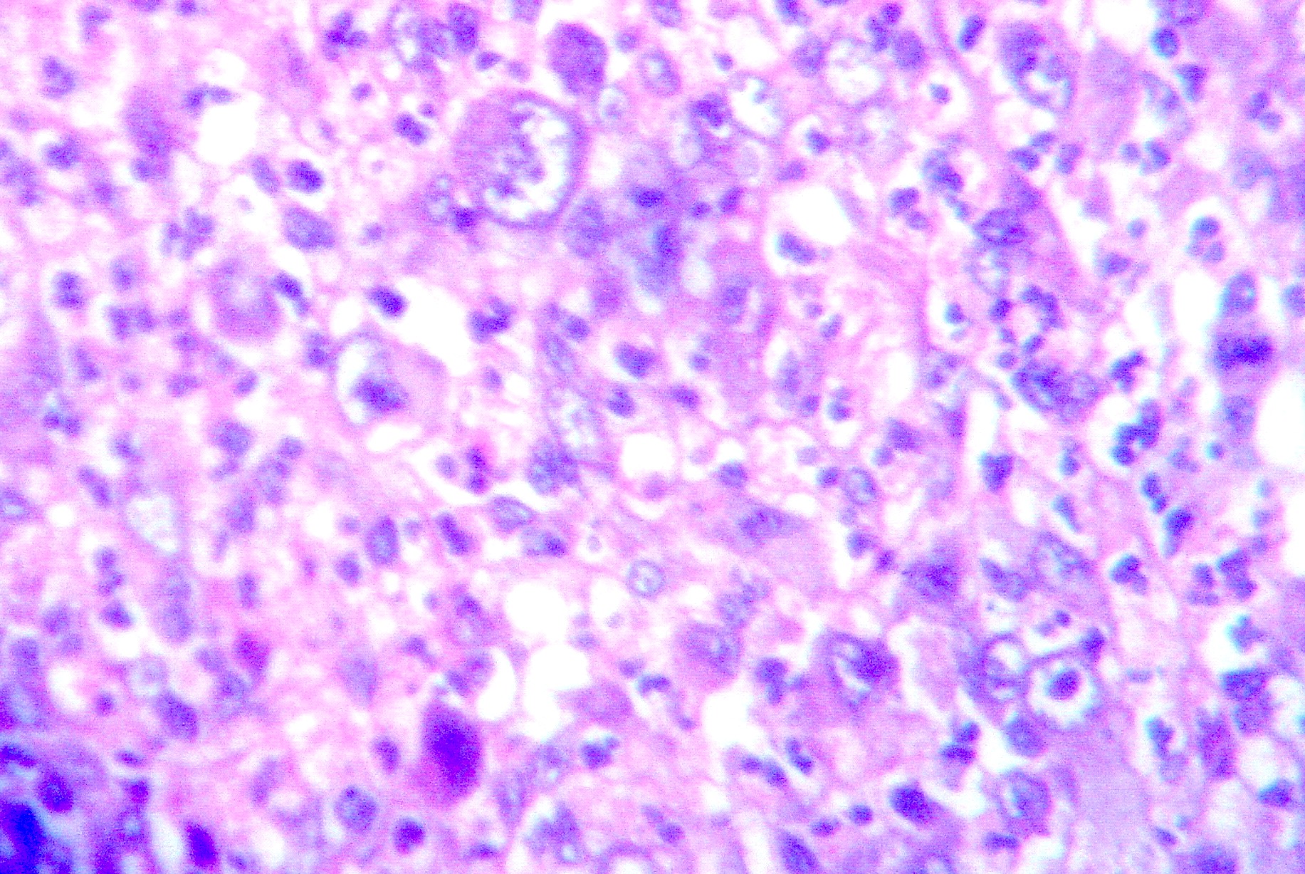 LN biopsy showed multinucleated tumor cells with abundant cytoplasm [H&E X 160]