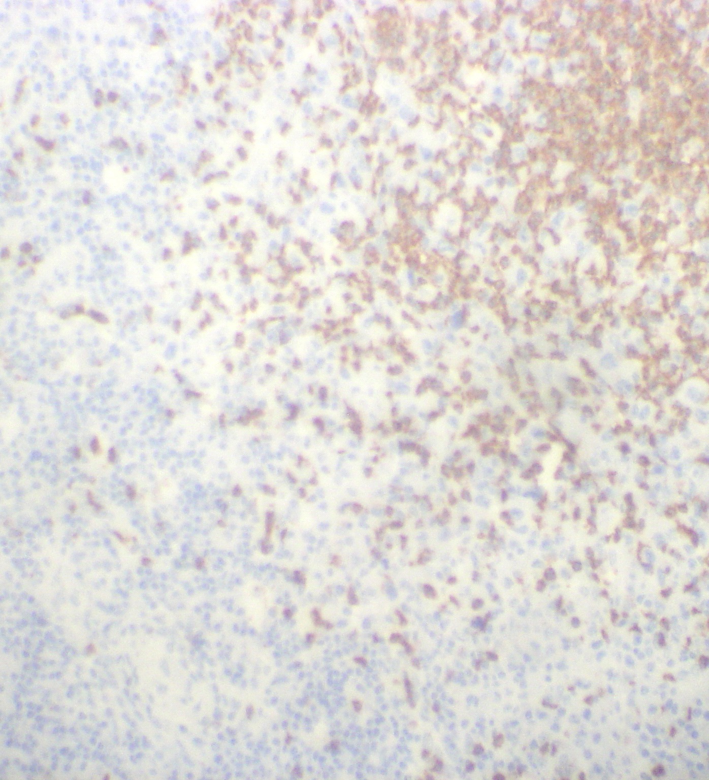 CD 15 immunohistochemical stain showed focal cytoplasmic staining for some cells [X 160]