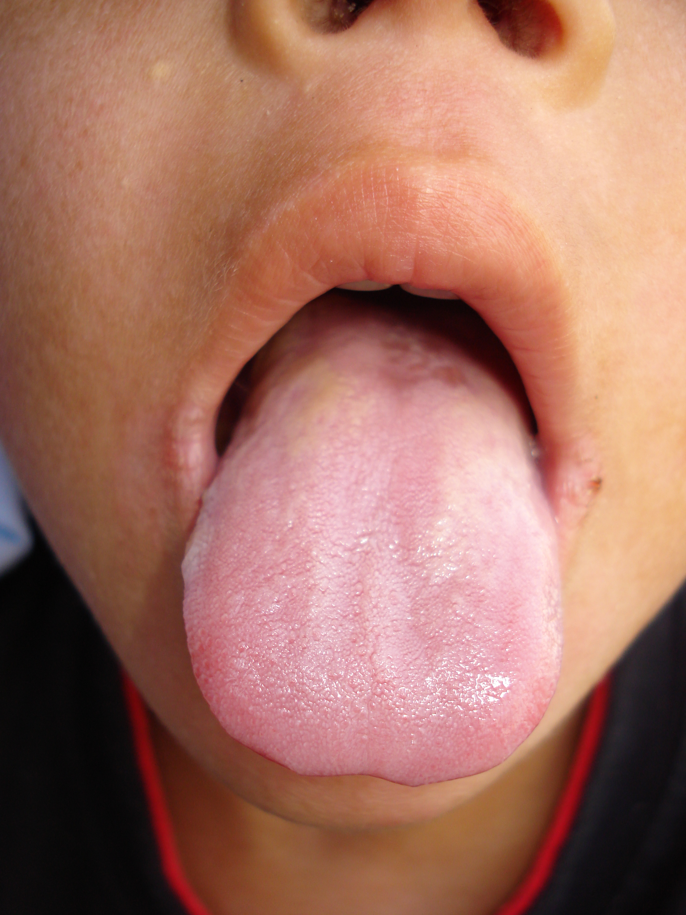 Showing leukoplakia on tongue and angular cheilitis of mouth.