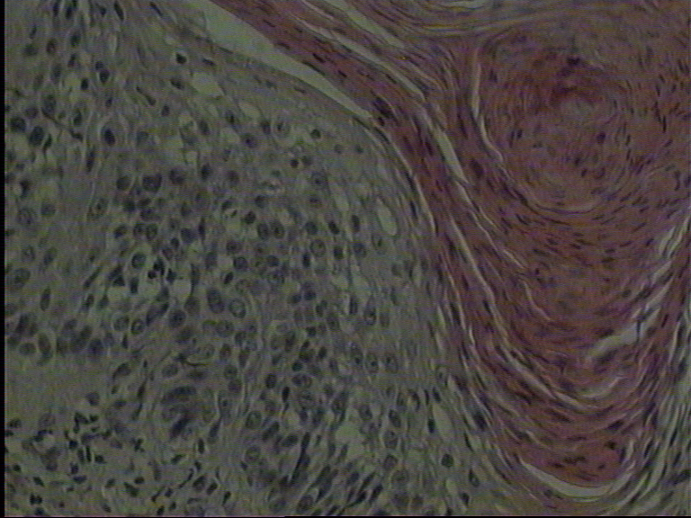 Histology: Squamous cell carcinoma with a total depth of 0.7 mm.