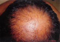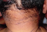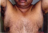 IntroductionHidradenitis Suppurativa (HS) Synonyms: Apocrinitis, Hidradenitis Axillaries, Acne Inversa It was first described in 1885 by French physician Alfred Verneuil for its characteristic intertriginous distribution [1]. It is a recurrent and suppurative disease with an insidious onset. It is characterized by deep furuncles, abscesses, fistulas, sinus tracts and scarring and has a prevalence rate of 0.3% to 4% of the general population [2]. The average age of onset is 23 years but it may fall anywhere between post-pubertal age to middle age [3]. HS is more prevalent in women than men by a ratio of between 2:1 and 5:1, with genito-femoral lesions found more often in women and anogenital lesions found more often in men [3,4]. The most commonly affected site, the axilla, is involved in equal proportion of men and women. Other affected area may include the areola, infra-mammary folds, periumbilical skin, scalp, zygomatic and malar face, buttocks, thighs, popliteal fossa, ear canal and eyelids [2,5]. Patients with active disease generally develop 2 furuncles per month with average disease duration of 19 years [5]. Case reportA 42yr old male presented to dermatology department with complaint of generalized, bilaterally symmetrical, mildly pruritic, reddish tender lesions on the face, shoulder and back since last 5 years. The patient also complained of patchy hair loss following the appearance of painful lesions on the scalp since last 4 years. There was history of large painful pus filled lesions with purulent discharge in the axillary and anogenital regions since last 3-4 years for which patient had been consulting a general surgeon. He had taken multiple courses of several antibiotics for the lesions which improved partially, only to recur later. He had undergone incision and drainage for the lesions around the anus following which pus discharge, pain and tenderness decreased after 2 days, but relapse occurred after 15 days. He gave a history of a dimple at the lower end of the spine. Patient had, however, never ever taken any treatment for the lesions on scalp and the back. He was a chronic smoker since last 20 years. There was no history of joint pain or joint swelling. He had no history of exposure to chemicals due to occupation or otherwise. There was no history of diabetes. Family history for similar disease was negative. Physical examination: The patient was overweight but otherwise healthy. Vitals were normal. Dermatological examination revealed few tender papules with patchy areas of scarring alopecia (on the vertex) on the scalp. Patient also had male pattern hair loss. There were generalized bilaterally symmetrical multiple follicular papules, follicular pustules and 2 to 3 cm fluctuating nodules on the face, shoulder and back. There were multiple atrophic scars on the face and more on the back. There were multiple, intermingled, 2 to 6 cm, at places linear hypertrophic and puckered scars and dermal contractures in the axillae and the anogenital region. Scarring, fibrosis and sinus tracts were seen. The lesions were painful and had a foul odour. Investigations: Cultures of the lesions did not grow out organisms. Haemoglobin was 10.5 gm%, Total Leucocyte Count was 10,500/ mm3, Differential Leucocyte Count was Neutrophil 73%, Lymphocyte 23%, Esnophils 2% and Monocyte 2%. Erythrocyte Sedimentation Rate was 30 mm at the end of first hour. Total Serum Protein was 7 gm%, Albumin 4 gm% and Globulin 3 gm%. Repeated cultures of pus, Rheumatoid Factor, Lupus Erythematosus cell phenomenon, Mantoux test were negative. Urine and stool tests were normal. Patient was non reactive for Human Immuno Deficiency Virus and Hepatitis B Surface Antigen (HBsAg). In the face of typical clinical picture the diagnosis of follicular occlusion tetrad was made which includes four entities namely Acne Conglobata, Hidradenitis Suppurativa, Dissecting Cellulitis of scalp and Pilonidal Sinus. Treatment: Patient was started on topical clindamycin lotion twice daily and oral clindamycin and rifampicin 300 mg each twice daily for 12 weeks. Patient was reviewed every fortnight. At the end 3 months of above therapy patient responded partially. So keeping in view his clinical presentation of Follicular Occlusion Tetrad (FOT) along with male pattern baldness he was started on tab finasteride 5 mg daily while continuing the topical therapy. The patient started improving on this treatment. At the end of three months the lesions became quiescent and there was no relapse till 1 year thereafter. DiscussionThe initial symptoms of HS are localized erythema, pruritus and hyperhidrosis followed by the spontaneous development of painful and tender red nodules and abscesses with incessant purulent drainage, open comedones, sinus tracts and scarring [2,4]. This was present in our patient. Obesity tends to be more prevalent in patients with HS [6], although it is not been universally demonstrated in all studies [7]. It has been reported that the Body Mass Index (BMI) for men and women with HS is elevated at 27.8(+3) and 28.5(+5), respectively [8]. Obesity acts as a secondary factor, aggravating disease through mechanical trauma at skin folds. Our patient was overweight. Our patient was a chronic smoker of 20 yrs. A high incidence of smoking (89% are active smokers compared with 46% of controls) occurs amongst HS patients [9,10]. While HS is not typically thought to be related to medications, it has been reported to be exacerbated by lithium [11,12] and sirolimus [13]. Family history for similar disease was negative. In women, HS occurs almost exclusively after menarche. Premenstrual flares are common in about 50% of all cases. HS tends to improve with pregnancy and rebounds after parturition. Signs of virilization have been seen in HS but most case series indicate no significant change in serum hormone levels in HS patients [14]. The free androgen index is increased because of low level of sex-hormone-binding globulin, which is i